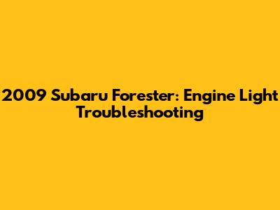 2009 Subaru Forester: Engine Light Troubleshooting