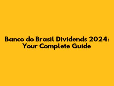 Banco Do Brasil Dividends 2024: Your Complete Guide