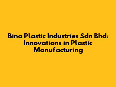 Bina Plastic Industries Sdn Bhd: Innovations In Plastic Manufacturing