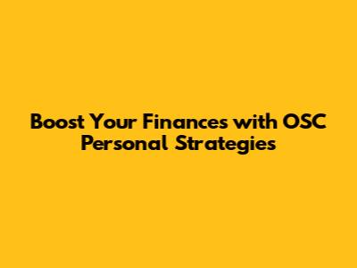 Boost Your Finances With OSC Personal Strategies