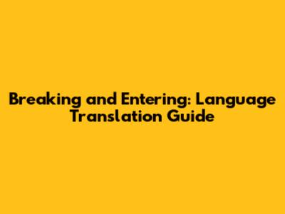Breaking And Entering: Language Translation Guide