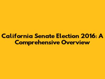 California Senate Election 2016: A Comprehensive Overview