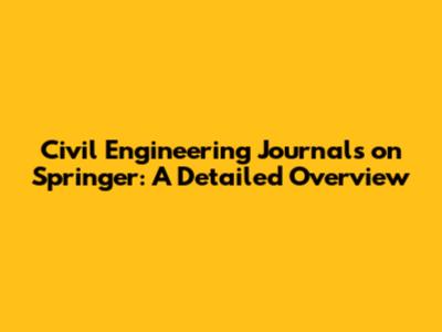 Civil Engineering Journals On Springer: A Detailed Overview