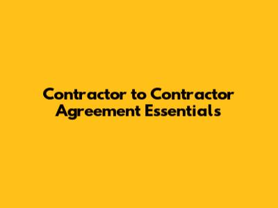 Contractor To Contractor Agreement Essentials