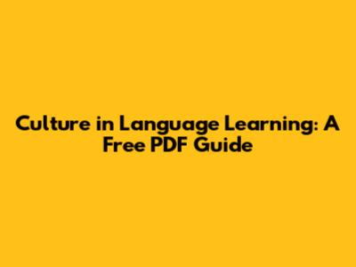 Culture & Language Learning: Free PDF Guide