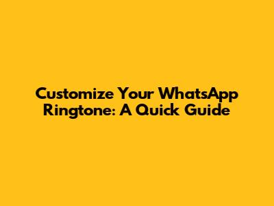 Customize Your WhatsApp Ringtone: A Quick Guide