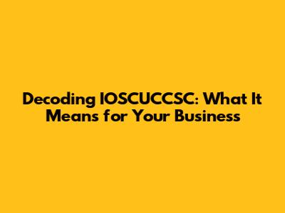 Decoding IOSCUCCSC: What It Means For Your Business