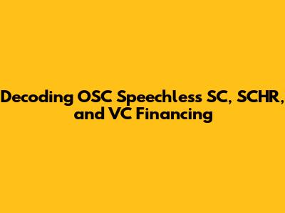 Decoding OSC Speechless SC, SCHR And VC Financing