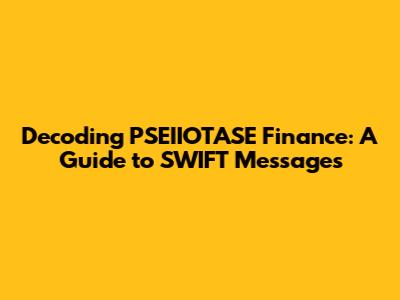 Hey guys! Ever heard of PSEIIOTASE finance and felt a little lost when you stumbled upon SWIFT messages? Don't worry, you're not alone! These two concepts can seem pretty complex at first glance. But today, we're going to break down PSEIIOTASE finance and how it interacts with SWIFT messages in a way that's easy to understand. We'll explore what these terms mean, how they're related, and why understanding them is important in the world of international finance. Buckle up, because we're about to embark on a journey that will make you feel like a finance pro in no time!