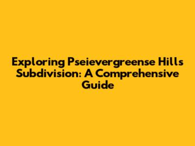 Exploring Pseievergreense Hills Subdivision: A Comprehensive Guide