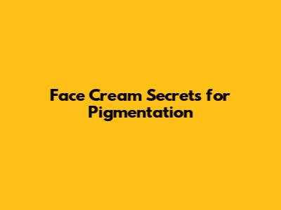 Face Cream Secrets For Pigmentation