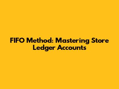 FIFO Method: Mastering Store Ledger Accounts