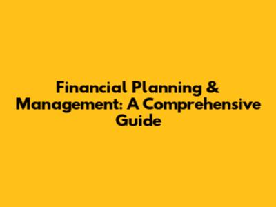 Financial Planning & Management: A Comprehensive Guide