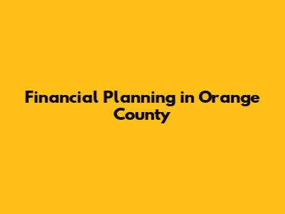 Financial Planning In Orange County
