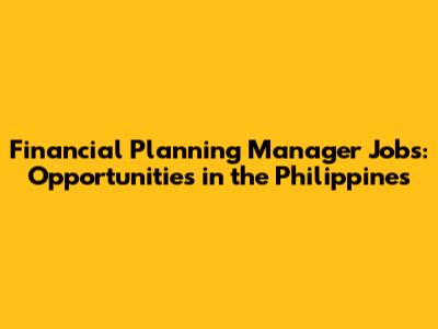 Finding Financial Planning Manager Jobs in the Philippines