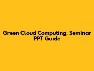 Green Cloud Computing: Seminar PPT Guide