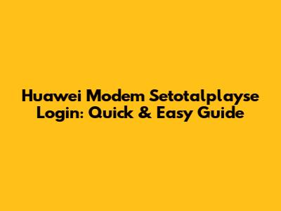 Huawei Modem Setotalplayse Login: Quick & Easy Guide