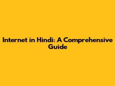 Internet In Hindi: A Comprehensive Guide