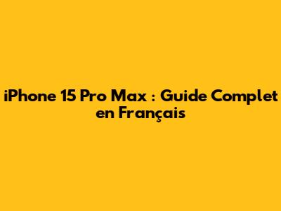 IPhone 15 Pro Max: Guide Complet En Français