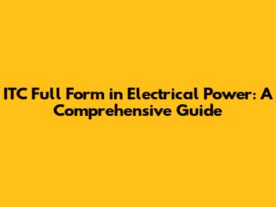 ITC Full Form In Electrical Power: A Comprehensive Guide