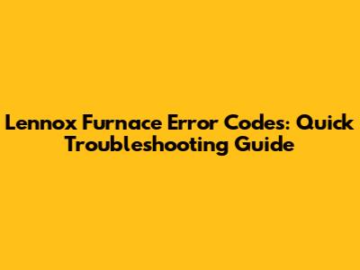 Lennox Furnace Error Codes: Quick Troubleshooting Guide