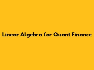 Linear Algebra: Quant Finance Applications