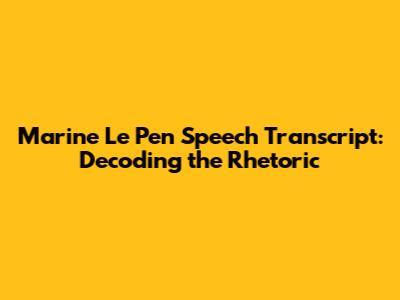 Marine Le Pen's Speech: Full Transcript & Analysis