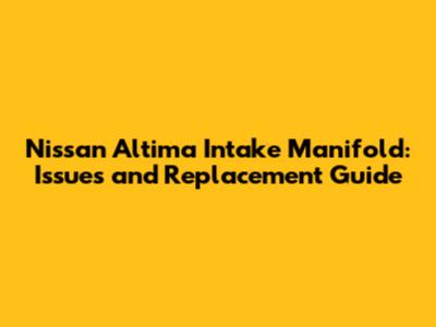 Nissan Altima Intake Manifold: Issues And Replacement Guide