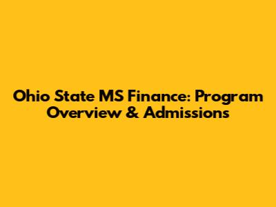 Ohio State MS Finance: Program Overview & Admissions