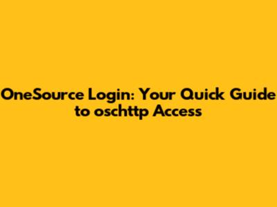 OneSource Login: Your Quick Guide To Oschttp Access