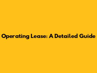 Operating Lease: A Detailed Guide
