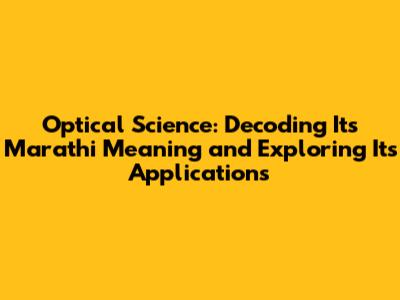 Optical Science: Marathi Meaning And Applications