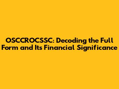 OSCCROCSSC: Decoding The Full Form And Its Financial Significance
