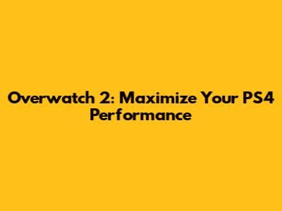 Overwatch 2: Maximize Your PS4 Performance