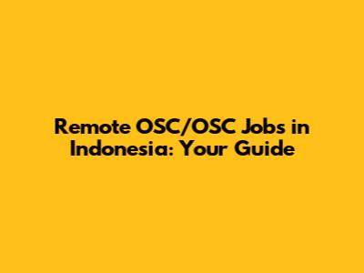 Remote OSC/OSC Jobs In Indonesia: Your Guide