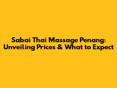 Hey guys! Are you planning a trip to Penang and looking for a way to unwind? Or maybe you're a local in need of some serious relaxation? Well, look no further! In this article, we're diving deep into the world of Sabai Thai Massage in Penang, giving you the lowdown on their services, prices, and what you can expect from a visit. Trust me, after reading this, you'll be booking your appointment faster than you can say "sawasdee!"