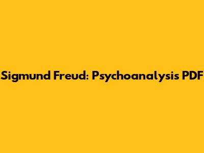 Sigmund Freud: Psychoanalysis PDF