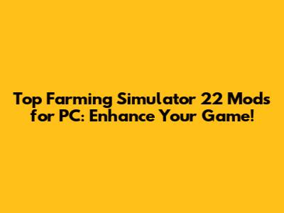 Top Farming Simulator 22 Mods For PC: Enhance Your Game!