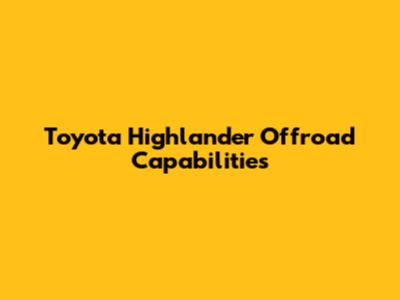 Toyota Highlander Offroad Capabilities