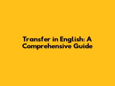 Transfer In English: A Comprehensive Guide