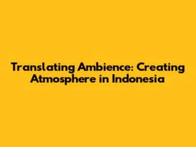 Translating Ambience: Creating Atmosphere In Indonesia