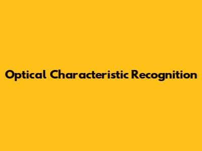 What is Optical Characteristic Recognition?