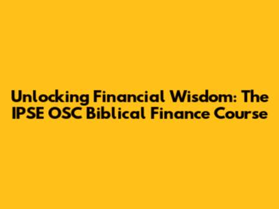 Unlocking Financial Wisdom: The IPSE OSC Biblical Finance Course