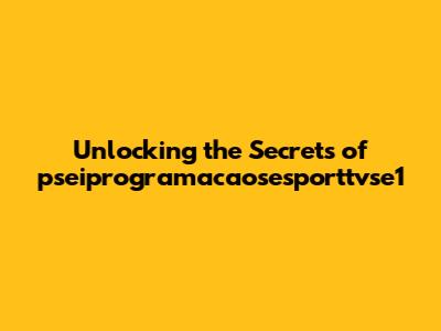 Unlocking The Secrets Of Pseiprogramacaosesporttvse1