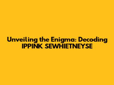 Unveiling The Enigma: Decoding IPPINK SEWHIETNEYSE