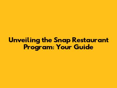 Unveiling The Snap Restaurant Program: Your Guide