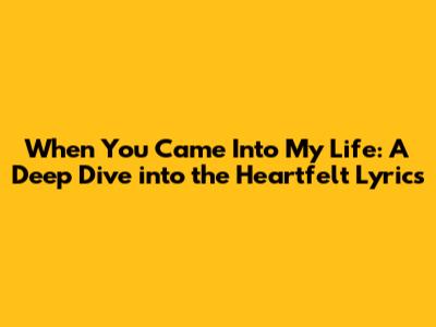 Hey guys! Ever have a song come on that just hits you right in the feels? Like, really hits you? Well, today we're diving deep into the lyrics of "When You Came Into My Life." This isn't just any song; it's a story, an emotion, a whole mood packed into a few verses and a killer chorus. Whether you're a longtime fan or just stumbled upon this gem, get ready to explore what makes these lyrics so darn special. We'll break down the meaning, unpack the feelings, and maybe even find a new appreciation for this absolute banger. So grab your headphones, maybe a tissue, and let's get into it!